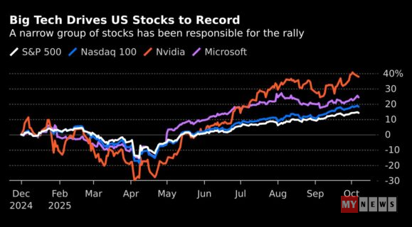 Worries about a potential AI bubble have grown as a record-breaking rally in US stocks has lifted valuations. The tech-heavy Nasdaq 100 Index is up 18% this year, trading at 28 times forward earnings versus a 10-year average of 23.