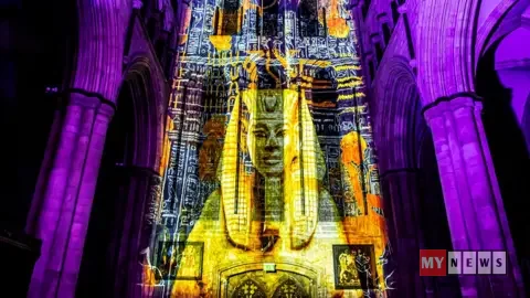Last year the lightshow featured projections drawing onAnglo-Saxon manuscripts, art and architecture.