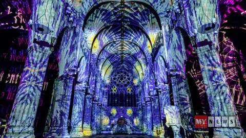 Last year the lightshow featured projections drawing onAnglo-Saxon manuscripts, art and architecture.