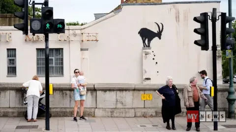 Nine works, including a rhino mounting a car,two elephants with their trunks stretched towards each other, and three monkeys swinging on a bridge, appeared over nine days in August 2024.